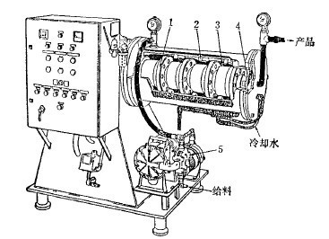 环型磨机的外形很象W形状(图1),是近几年研制的一种新的超细磨设备。该设备主要特点是磨机筒体由类似 形的内、外层的环型部分组成。磨矿之前,将待粉碎的物料(矿浆)与研磨介质(玻璃球等)同时给入环形筒体内,由于内层筒体的旋转运动,使处在狭窄缝隙中的物料,受到均匀的剪切作用而被磨碎。磨机外层筒体制成带有缝隙的双层环形部分,向缝隙中加入冷却水,冷却效果良好。这类磨机依靠磨机筒体本身具有强烈的自转和公转而使研磨介质产生巨大的冲击、研磨作用而磨碎物料。
