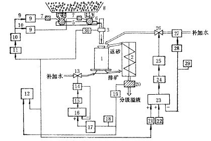 3)根据浓度计测量分级机溢流浓度,调节分级机补加水,以调节分级溢流浓度的闭环控制。