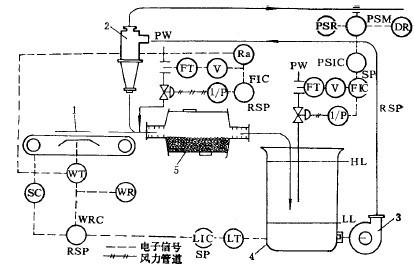 1)根据电子秤测量给矿量,调节圆盘给矿机的转速,以恒定给矿量的闭环控制。