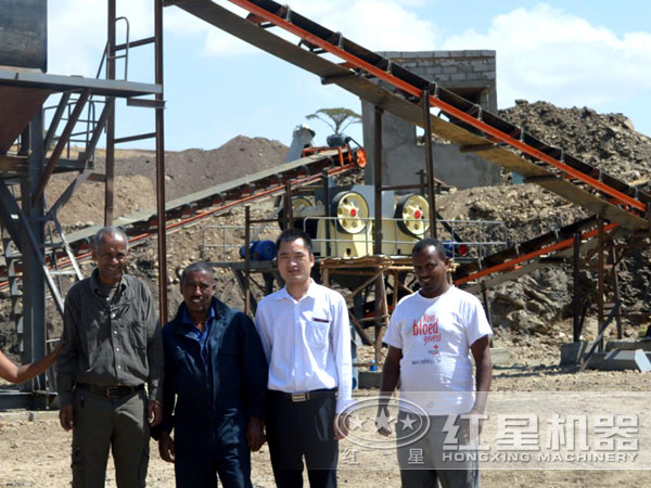 粗破前的原矿物料进入磨机前,安装一级滚筒筛,可以将不同粒度的物料进行分级处理,再利用皮带机将颗粒度较大(即达不到磨机的处理要求)的物料选出来,再转运到粗破进一步破碎。将中颗粒(即可达到磨机处理要求)的物料用皮带机输送到磨机前的储料仓。而在破碎过程中产生的微细颗粒(即已达到磨机的出料粒度),用水冲洗到收集池,再安装碴浆泵,将微细颗粒的物料直接进入磨后选矿加工流程中。这样就可以防止过磨,提高工作效率,降低物料损耗,适合于有粗破、磨机进行砂加工的砂石生产线。
