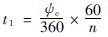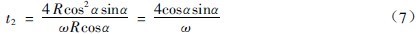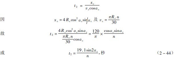 为筒体的角速度,t2为球在抛物线轨迹上运动的时间,
