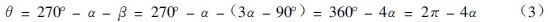 磨机一直是作圆运动的,但其中的钢球的运动轨迹,一部分是圆曲线,另一部分是抛 物线。因此,磨机转一转,钢球的运动未必也就是一个循环。钢球从脱离点A真抛到落回点B,比圆运动快,因而钢球总是超前的,换句话说,磨机转一转时,钢球不只循环运动一次。设%"是钢球作圆运动的时间,当磨机转一转时,用同样速度作圆运动的钢球转过的圆心角为