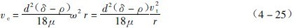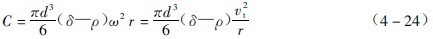 当v0>ua时,va为正值,颗粒向下沉降;在v0<ua时,颗粒向上运动;在v0=ua时,v0=0,颗粒呈悬浮状态。在旋转运动的介质流中,处于其中的矿粒要受到离心力C 的作用,其值为: