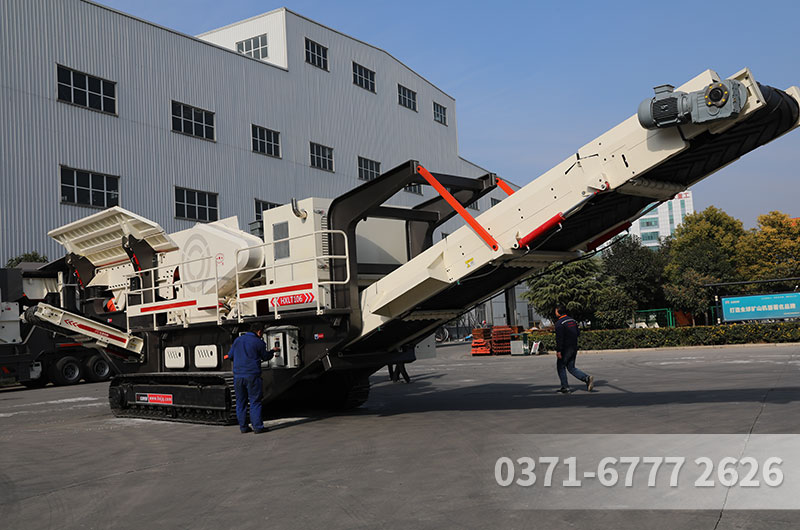 履带式移动破碎站:同样将进料口、破碎主机、出料带等集成到一台机子上,集成度较高,本身具备履带底盘进行移动,自己可提供动力,如果长距离运输,可直接将破碎站开到大拖车上,短距离移动(如施工场地转场)可直接开动破碎站进行移动,灵活多变。且履带移动破碎站,不用人驾驶,而是采用遥控操控的方式,安全度高、高度智能化,简单易学。