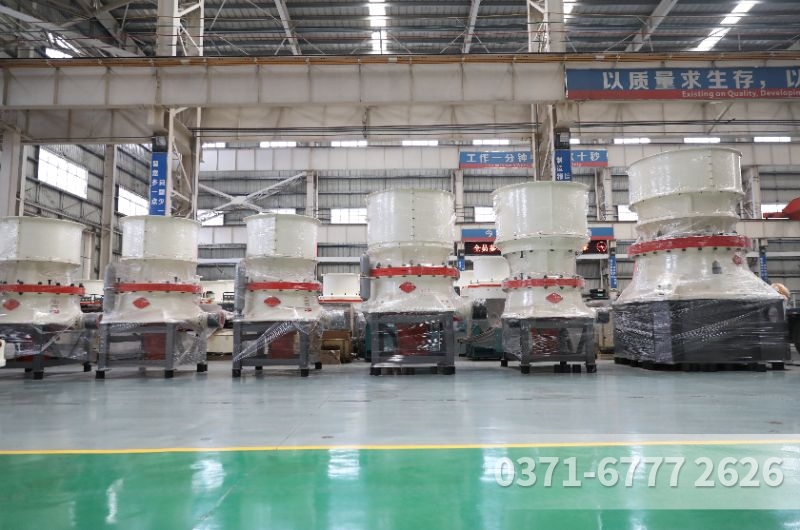 5)动锥和定锥都是正置,动锥摆动时,在破碎腔出料口附近,动锥与定锥之间有一段间隙相等的平行带,使成品料度均匀。进料口尺寸不大,能够处理的都是经过初次破碎的物料。