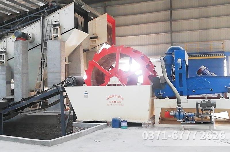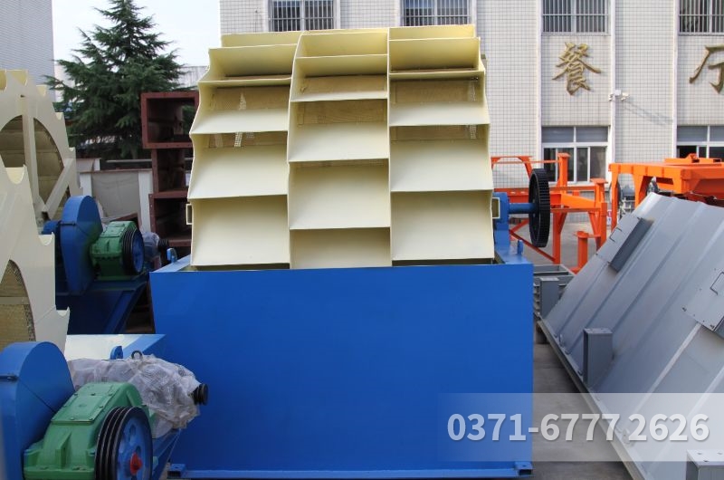 轮斗式洗砂机是以辅助制砂生产为主,根据洗砂机配备叶轮的个数,可分为单叶轮和双叶轮两种,与其他的水洗砂设备不同,当轮斗式洗砂机工作时,是利用叶轮的翻动和水流的流动来带走杂质和比重小的异物,从而完成砂石清洗工作。