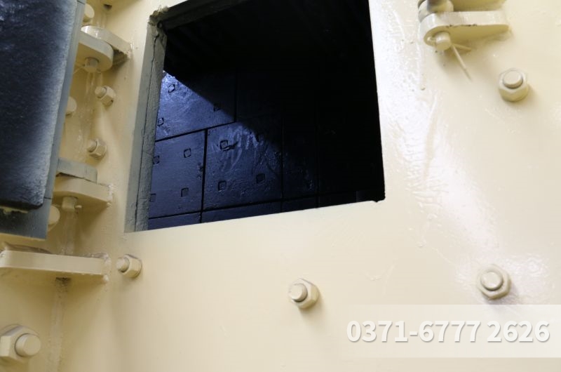 当物料进入机器的破碎腔以后,物料受到转动辊轴的啮力作用,使物料被逼通过两辊之间,同时受到辊轴的挤轧和剪磨,物料即开始碎裂,碎裂后的小颗粒沿着辊子旋转的切线,通过两辊轴的间隙,向机器下方抛出,超过间隙的大颗粒物料,继续被破碎成小颗粒排出。