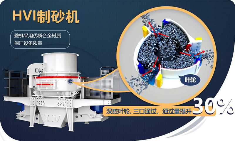 HVI制砂机是市场新款机型,进料尺寸35-55mm,产量70-585t/h“,破碎+制砂+整形”三合一,无论是成砂产量还是成品质量,都有很大的提升,周边中间两种进料方式,灵活转换,能够准确掌控成品品级,砂石粒度均匀,没有过多的针片状物料;更让人赞叹的是抛料头和周护板的设计能效延长使用寿命3-5倍,可为用户节省大量使用成本。